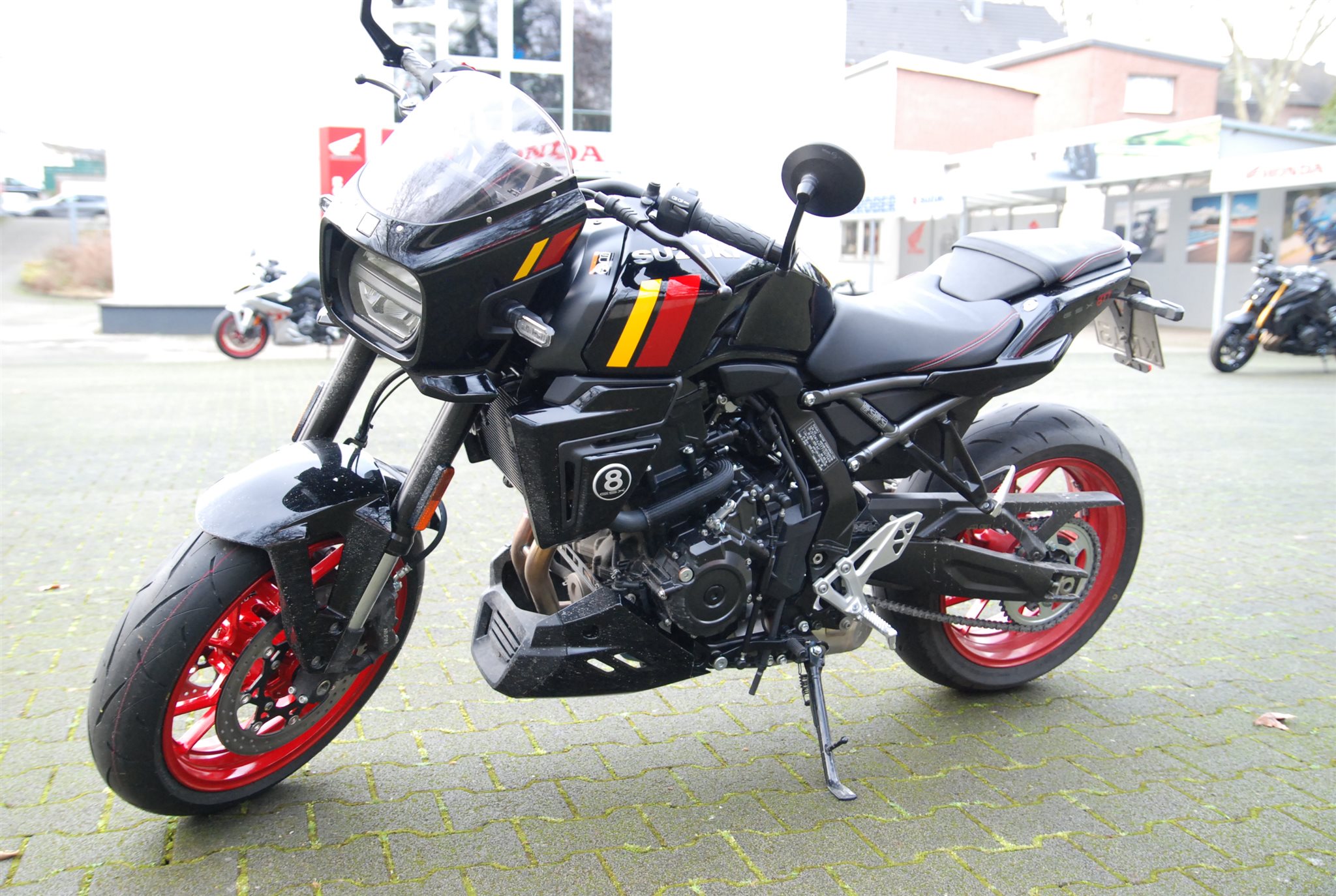 So stark im Look, dass man gerne schwach wird. Die GSX-8TT brilliert aber nicht nur optisch, sondern da, wo es wirklich darauf ankommt: mit dem top-getesteten Parallel-Twin-Motor, dem einfühlsamen Fahrwerk mit KYB-Gabel und Leichtmetall-Schwinge, mit allem, was dir Spaß macht.