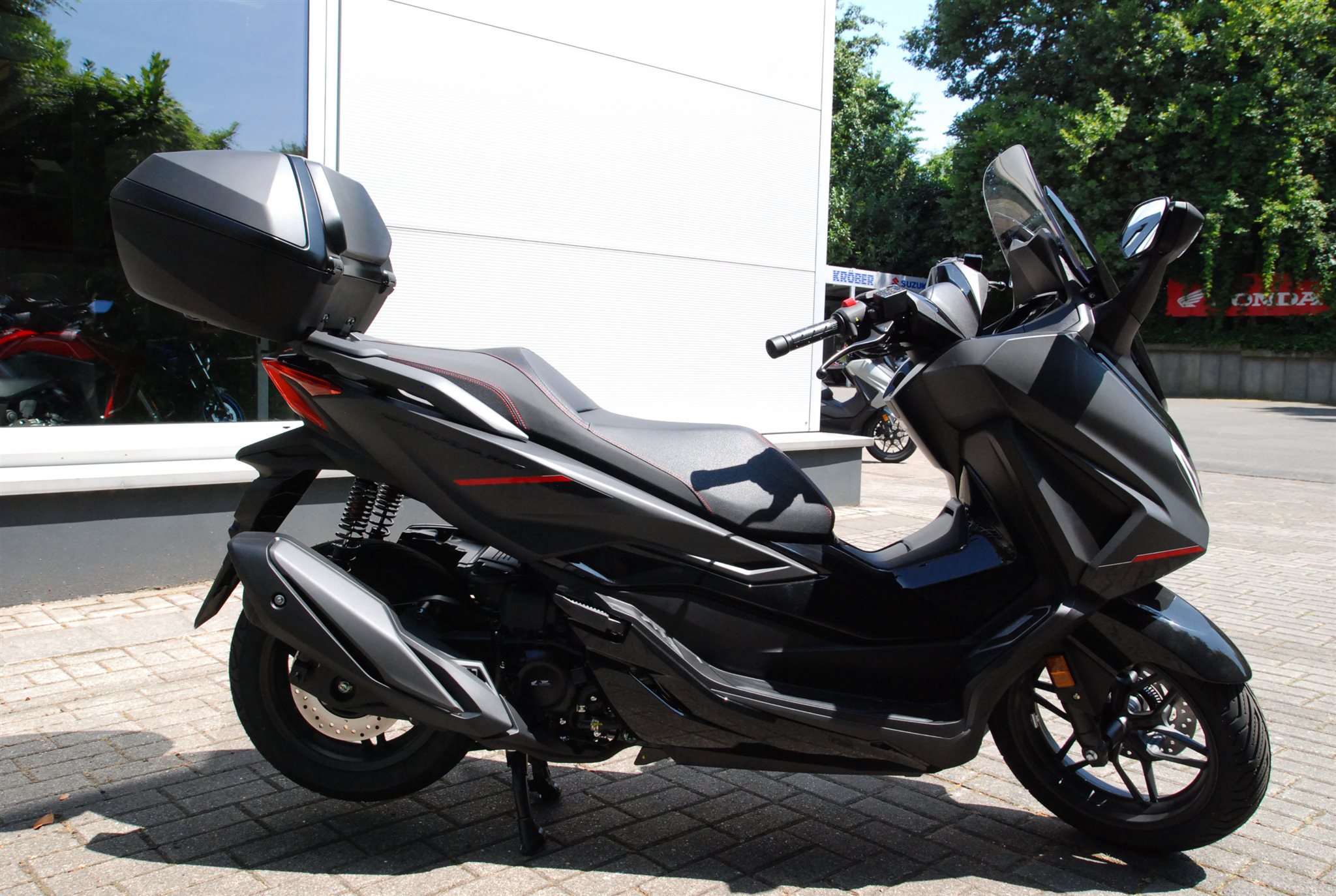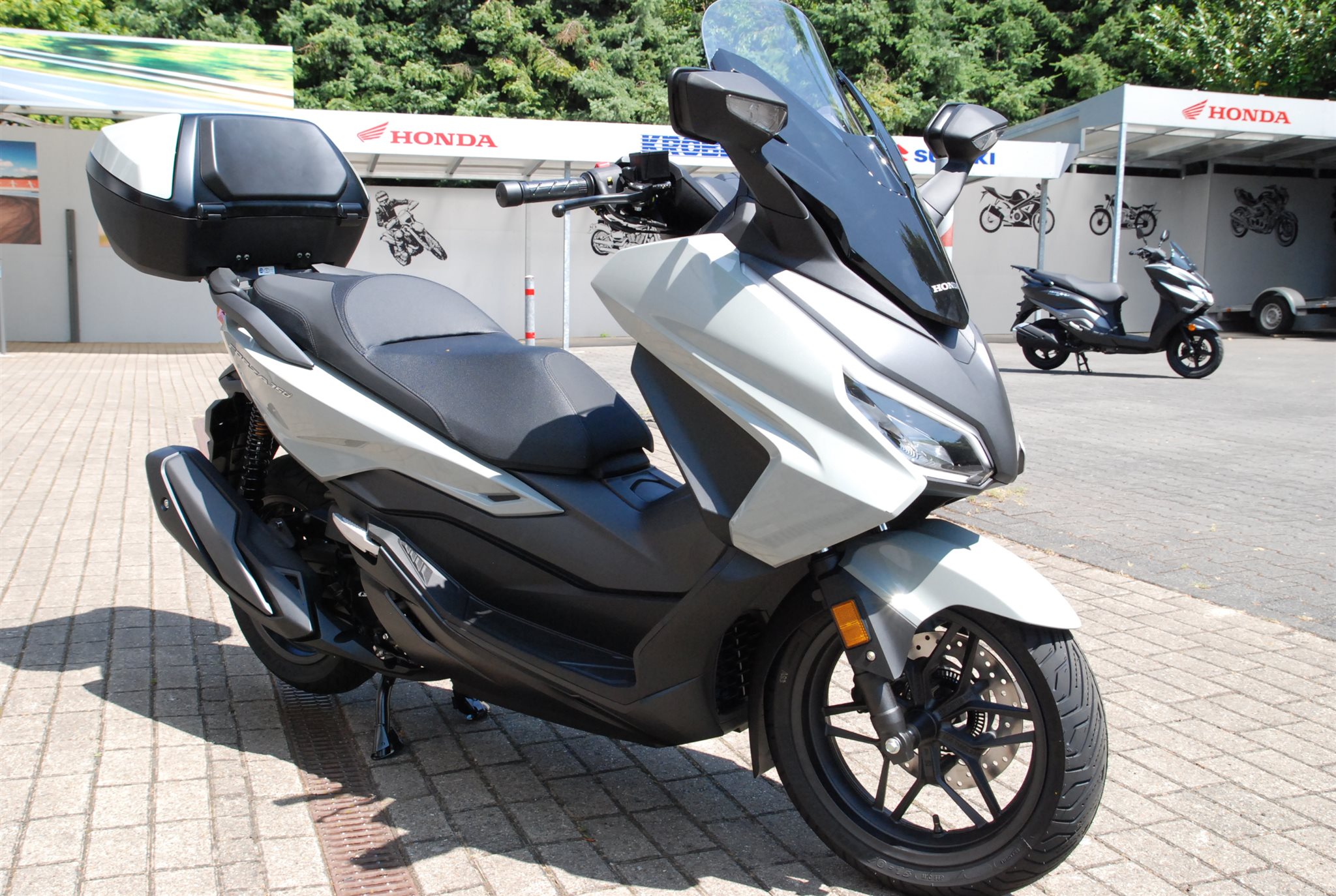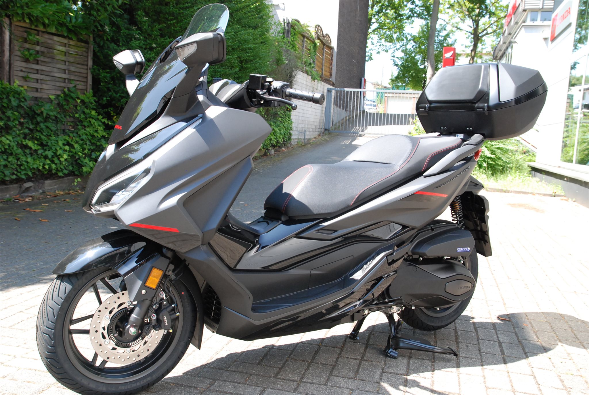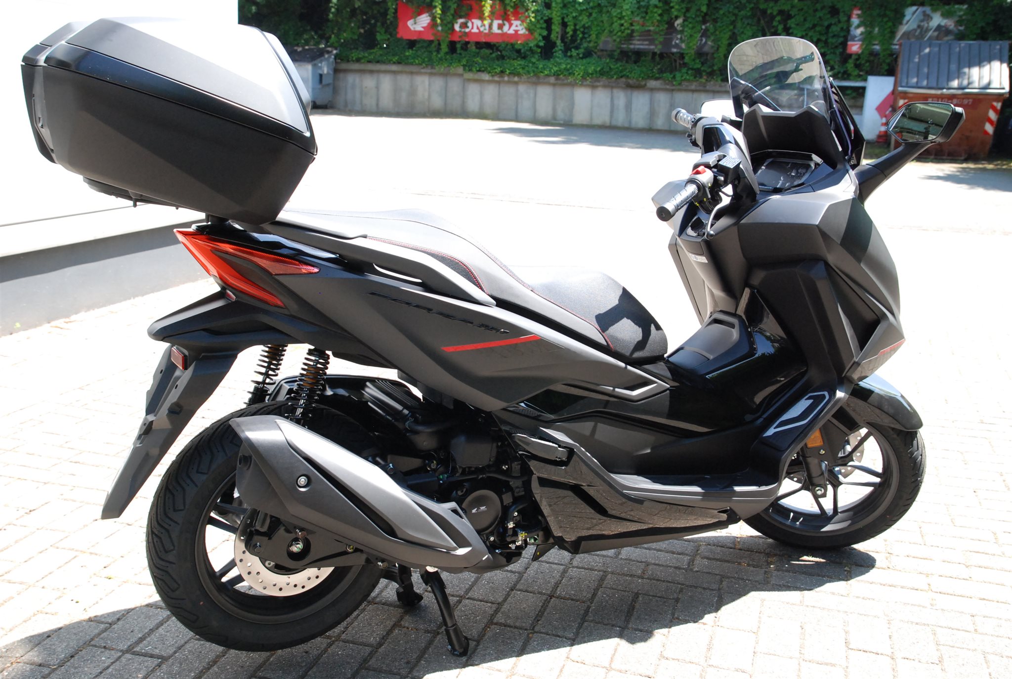 Der Forza 350 ist ein echter Sport-GT-Roller mit kraftvoller Motorleistung, HSTC für sicheres Fahren und exzellenter Kraftstoffeffizienz und das alles in einem schlanken Design mit großzügigem Stauraum unter dem Sitz. Mit dem 5-Zoll TFT-Display und der Honda RoadSync-Integration bleibst du den ganzen Tag über in Verbindung und hast während der Fahrt nahtlosen Zugang zu Anrufen, Musik und Navigation.