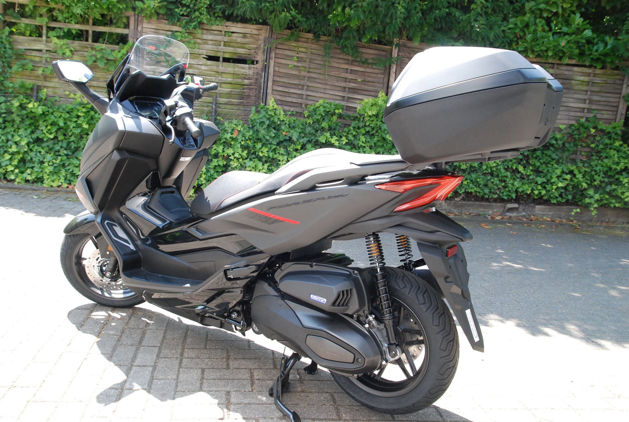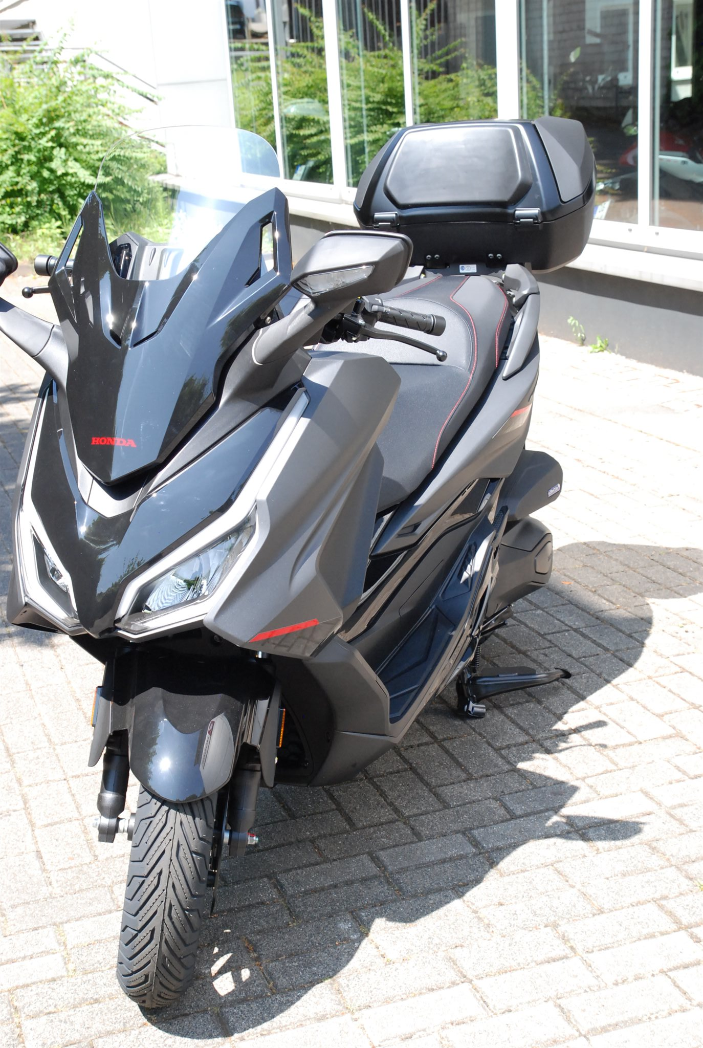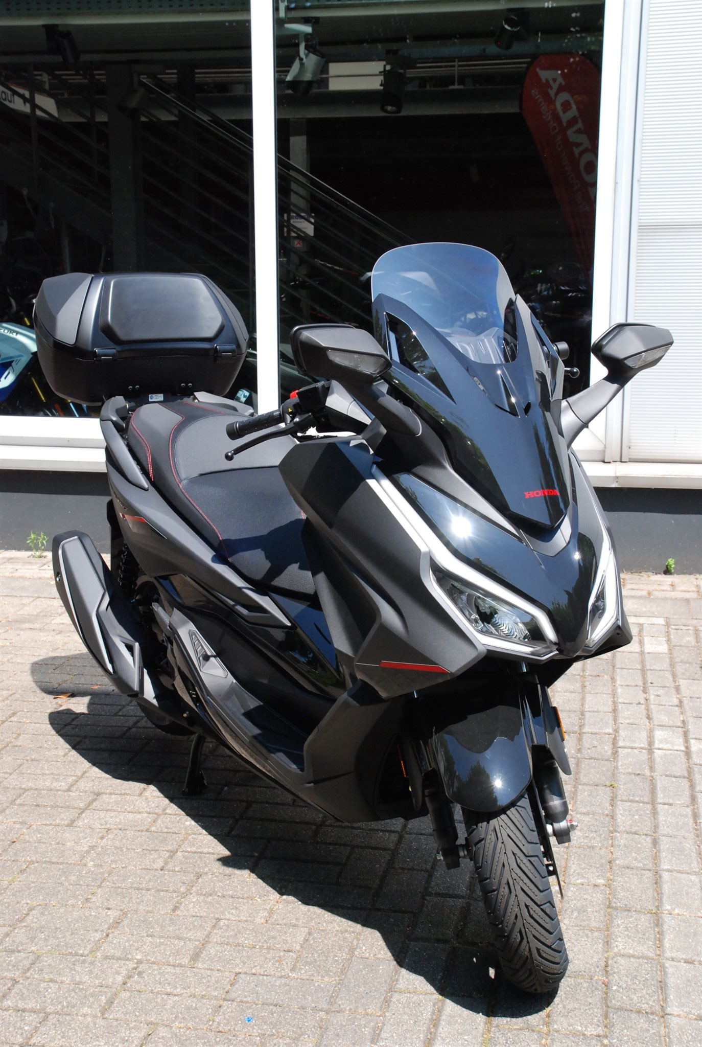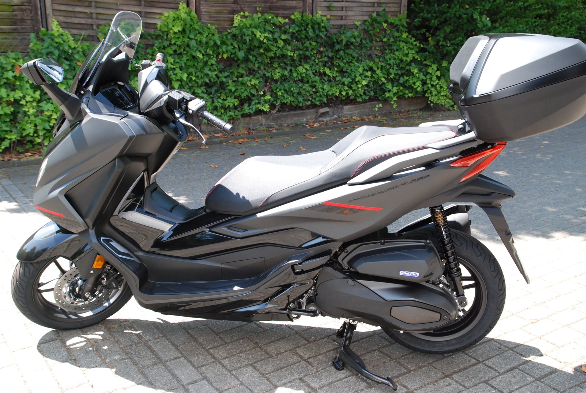Der Forza 350 ist ein echter Sport-GT-Roller mit kraftvoller Motorleistung, HSTC für sicheres Fahren und exzellenter Kraftstoffeffizienz und das alles in einem schlanken Design mit großzügigem Stauraum unter dem Sitz. Mit dem 5-Zoll TFT-Display und der Honda RoadSync-Integration bleibst du den ganzen Tag über in Verbindung und hast während der Fahrt nahtlosen Zugang zu Anrufen, Musik und Navigation.